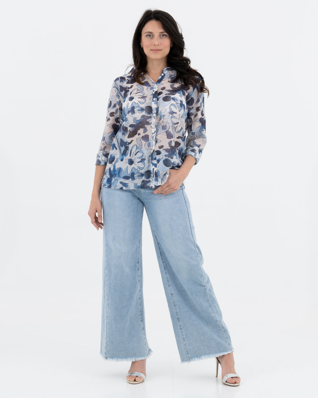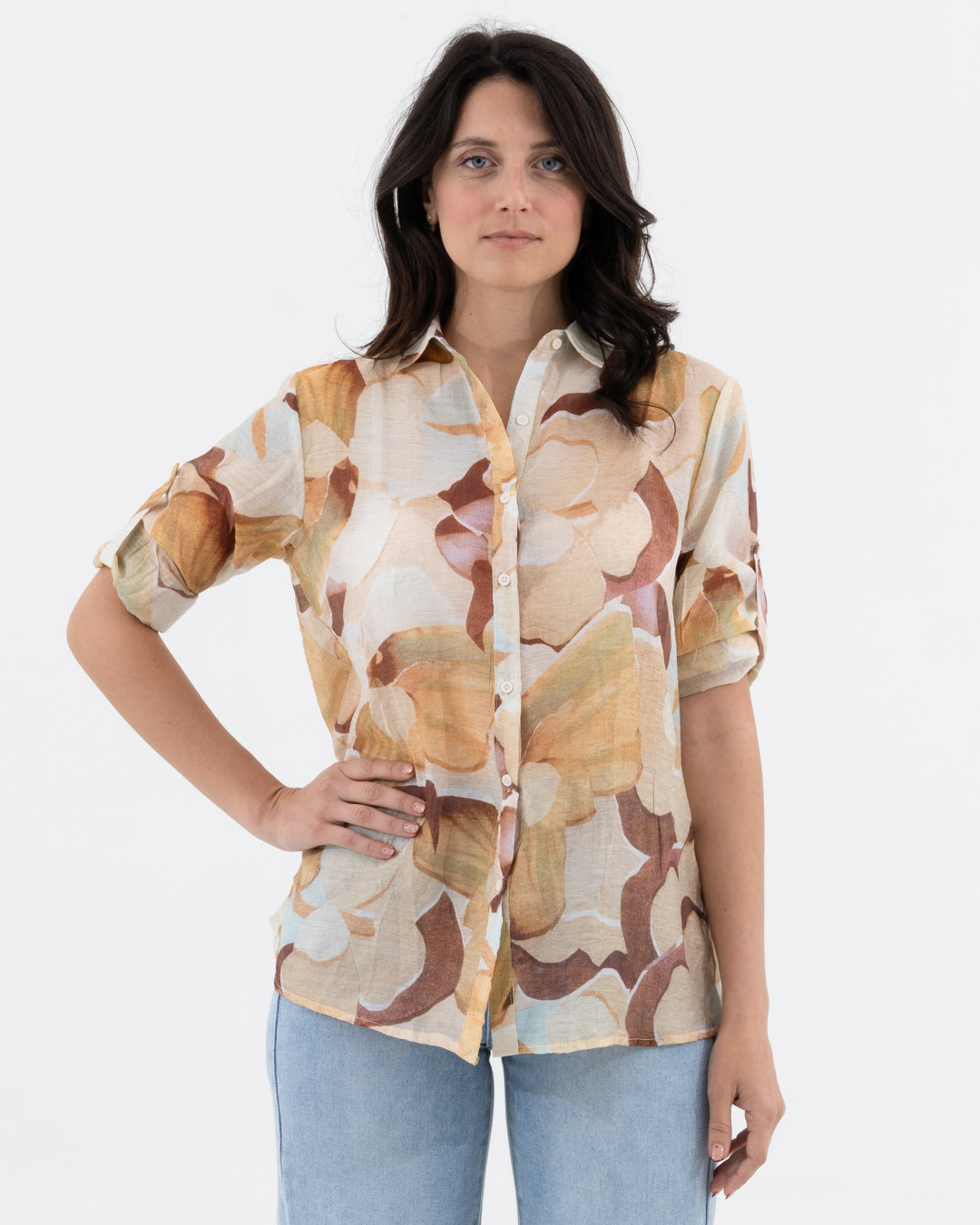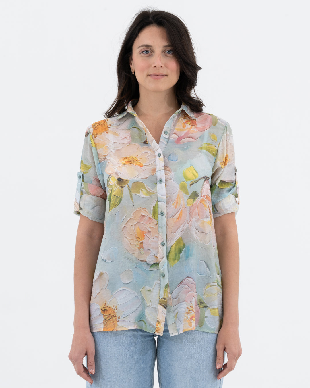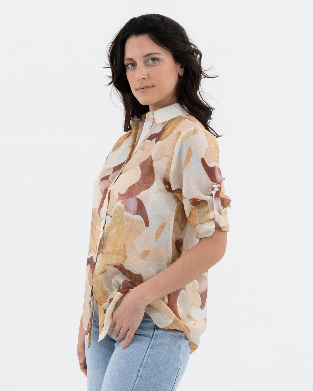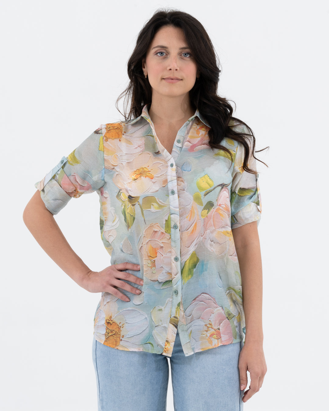 Update your wardrobe with the floral print summer shirt, the perfect piece to add a touch of vivacity and femininity to your looks. The lightweight and breathable fabric caresses the skin, offering a fresh and comfortable fit, ideal for the hottest days. The delicate and vibrant floral pattern adds a touch of freshness and femininity, while the buttons on the sleeves allow you to roll them up with style, transforming the look in just a few steps. The classic collar and front button closure add timeless elegance, making it a must-have for the summer.