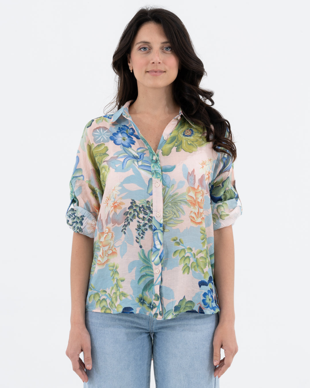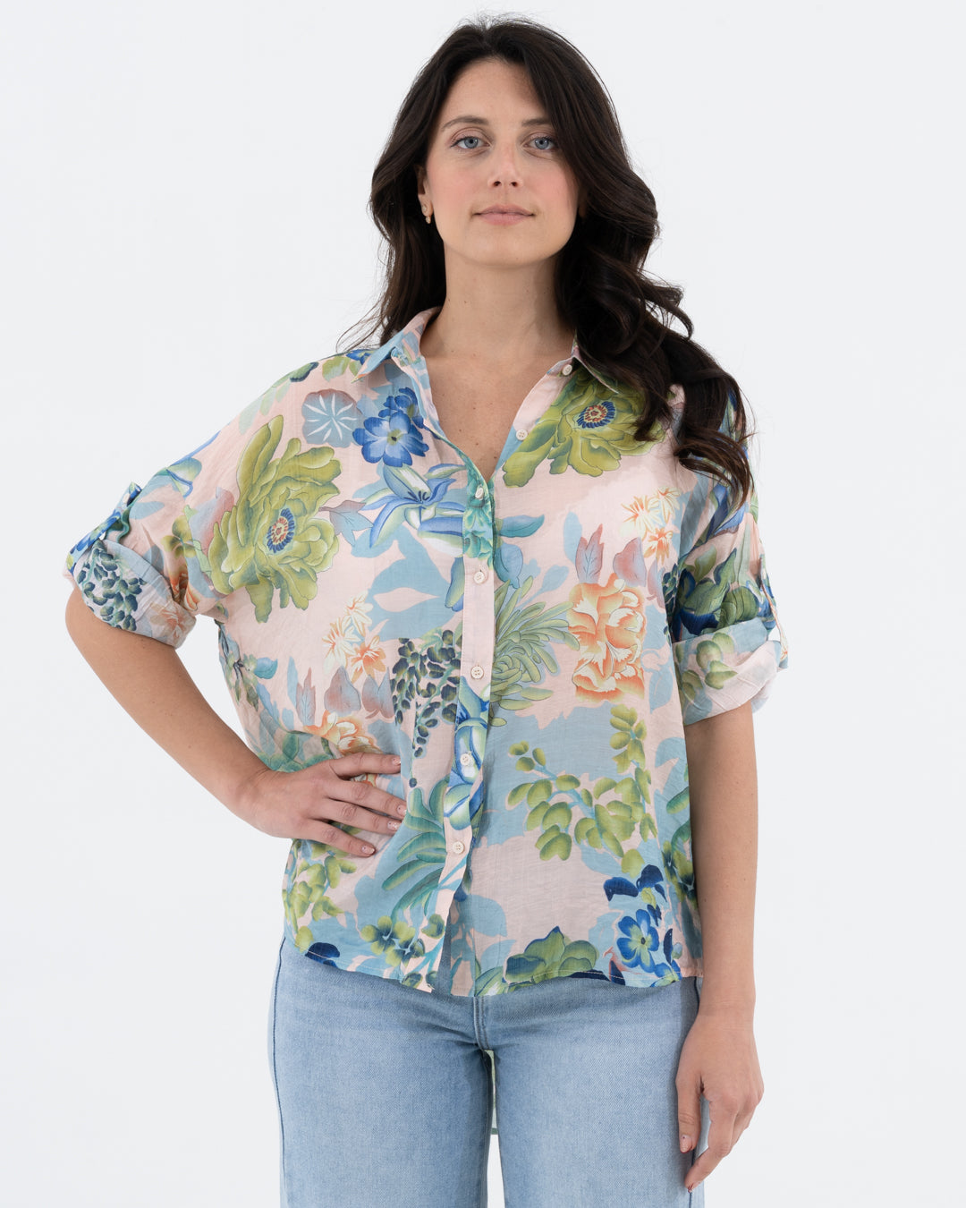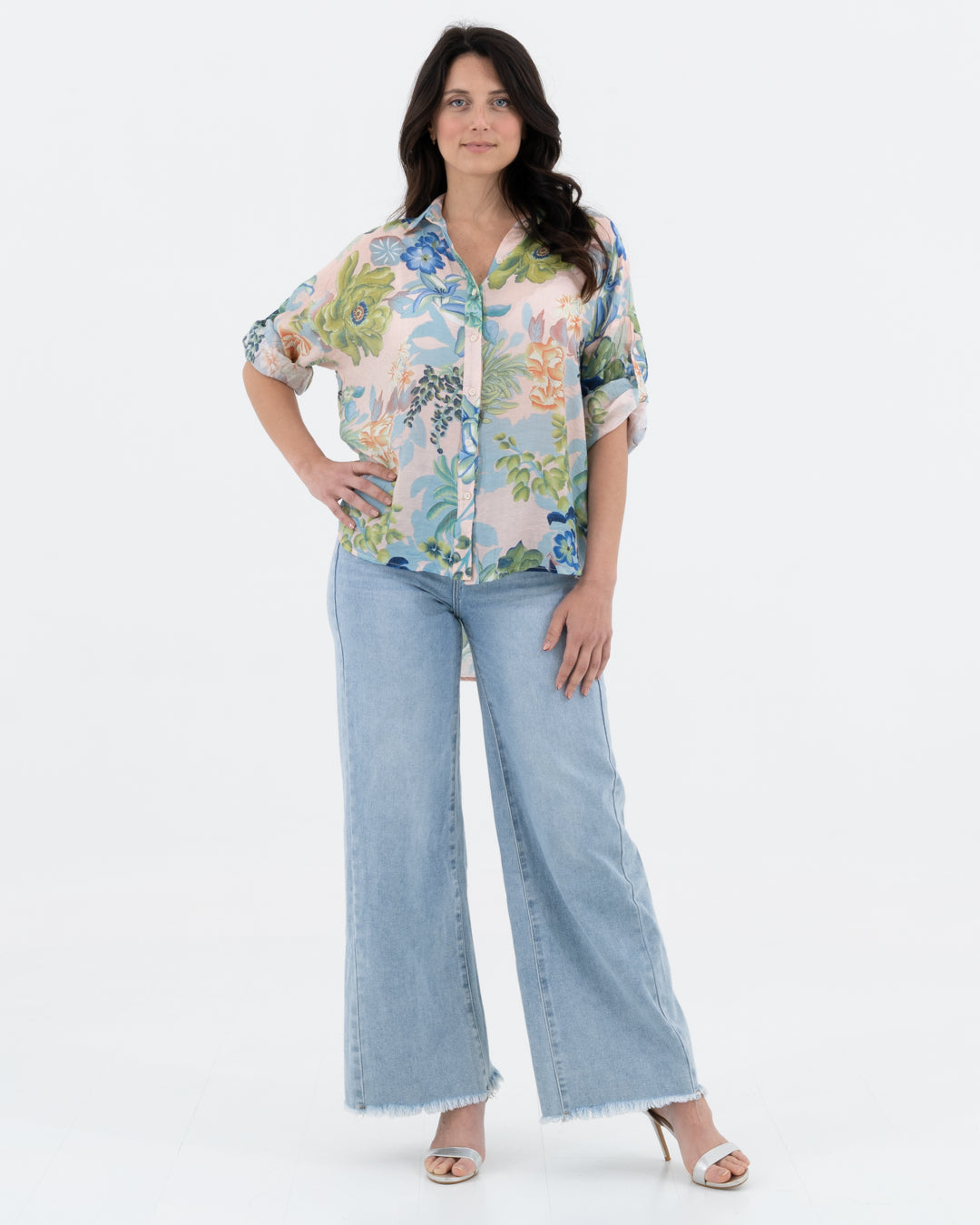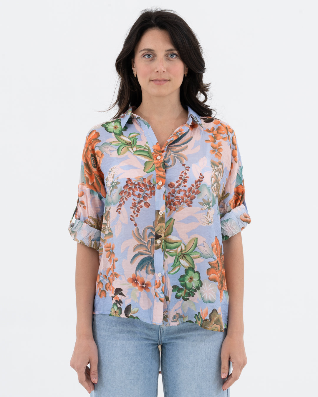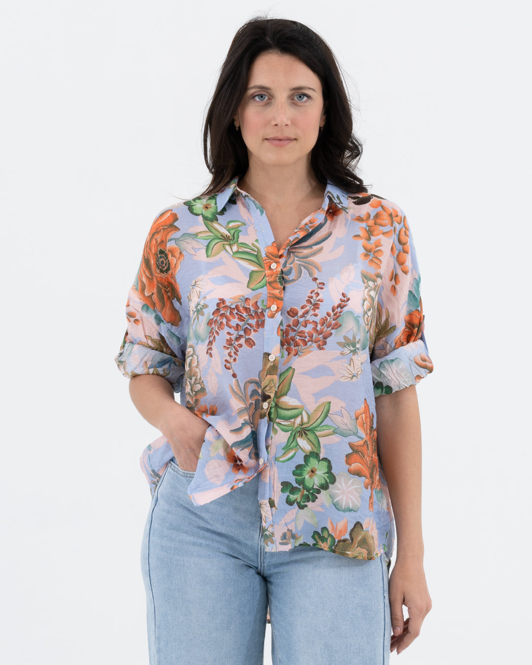 Update your wardrobe with the floral print summer shirt, the perfect piece to add a touch of vivacity and femininity to your looks. The lightweight and breathable fabric caresses the skin, offering a fresh and comfortable fit, ideal for the hottest days. The delicate and vibrant floral pattern adds a touch of freshness and femininity, while the buttons on the sleeves allow you to roll them up with style, transforming the look in just a few steps. The classic collar and front button closure add timeless elegance, making it a must-have for the summer.