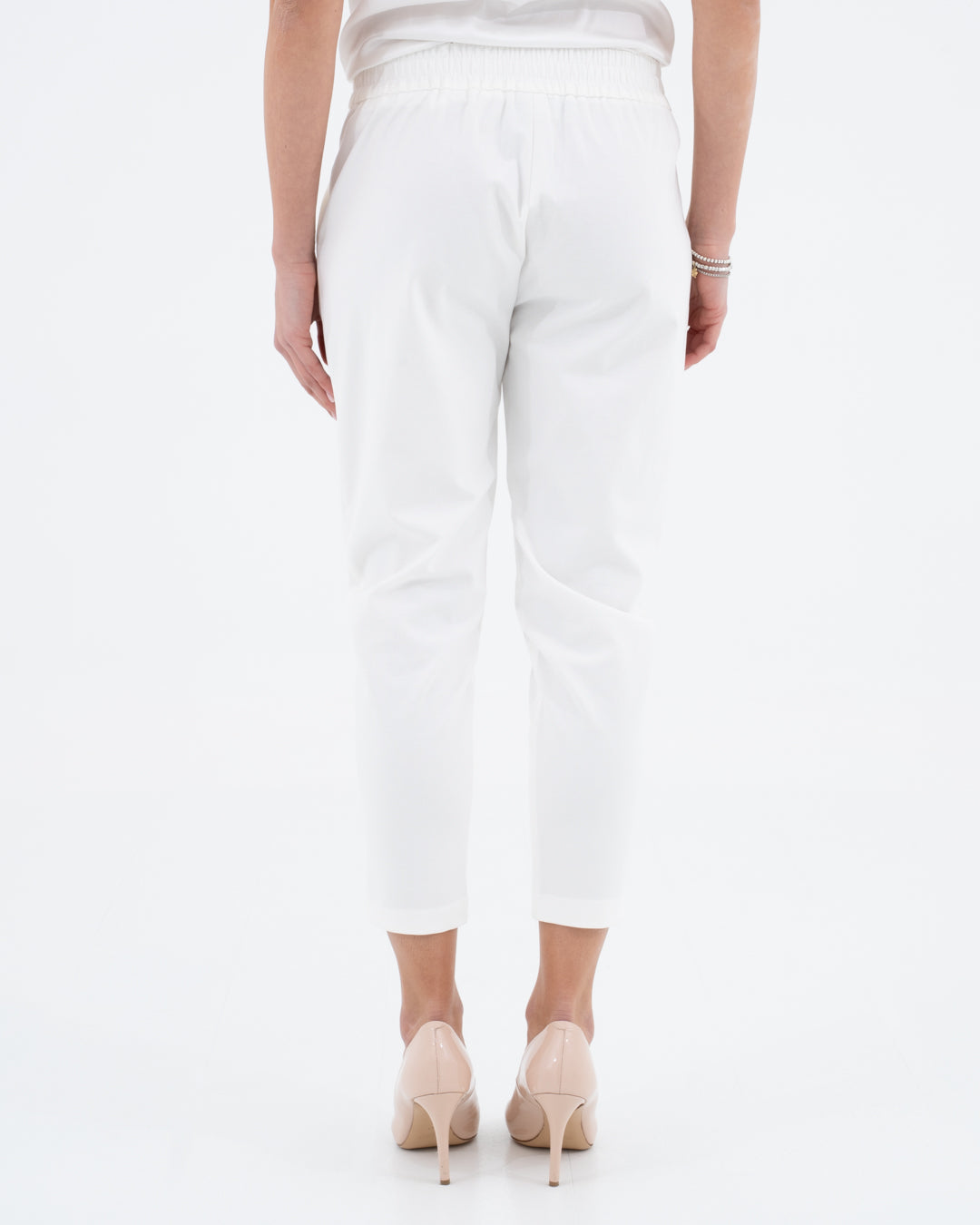 Discover the perfect balance between style and practicality with the trousers with elastic and pleats. Made of punto milano, a structured yet comfortable fabric, this model elegantly adapts to the silhouette without sacrificing comfort. The design with front pleats gives a tailored touch, while the elasticated waist ensures an impeccable fit for every occasion. Ideal for formal and casual-chic outfits, it pairs perfectly with blazers, shirts and light sweaters.