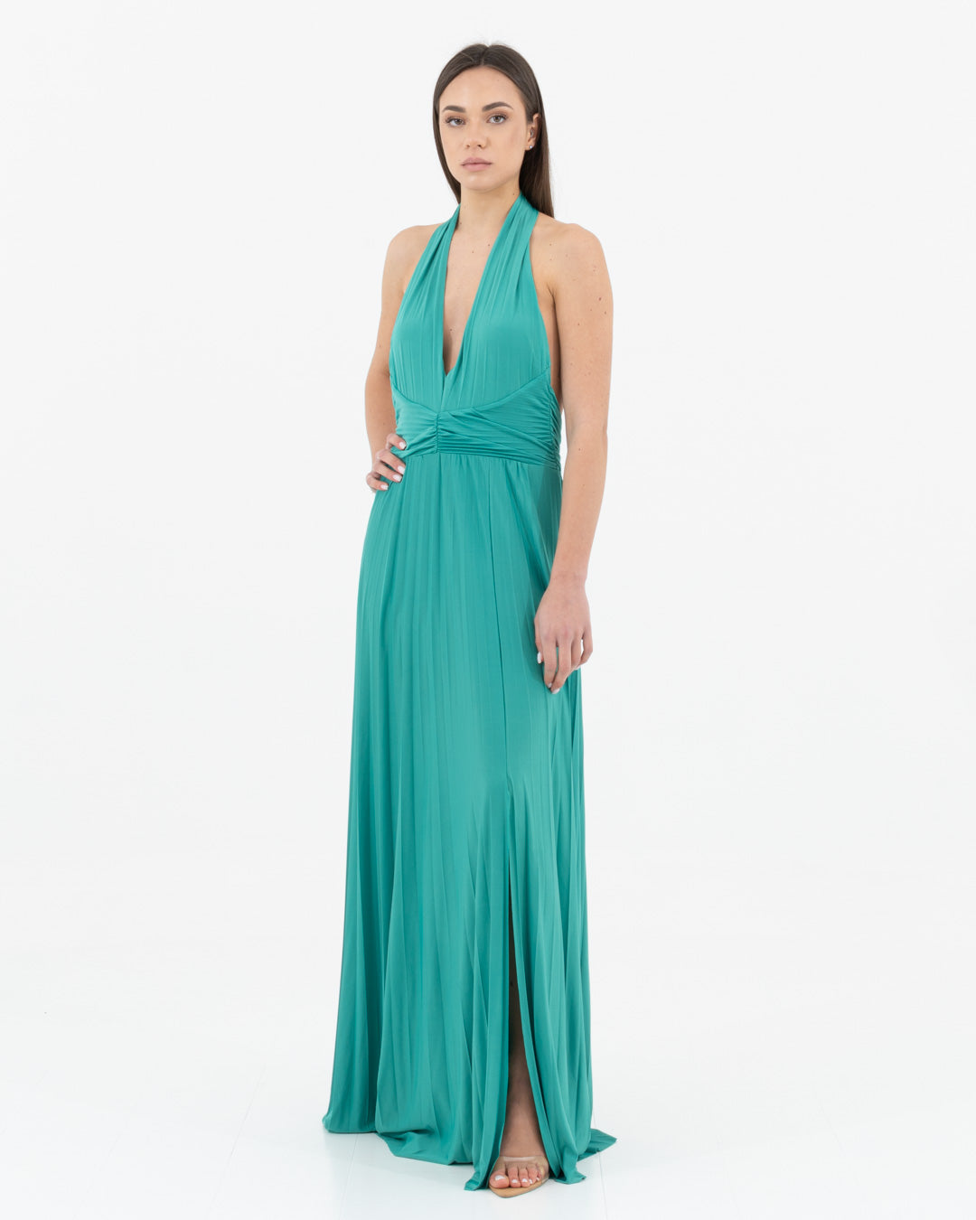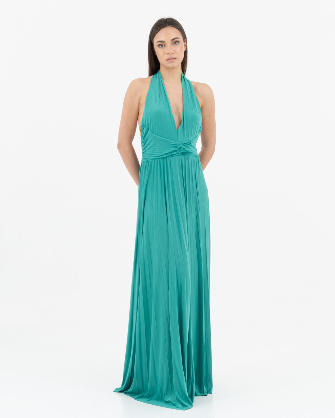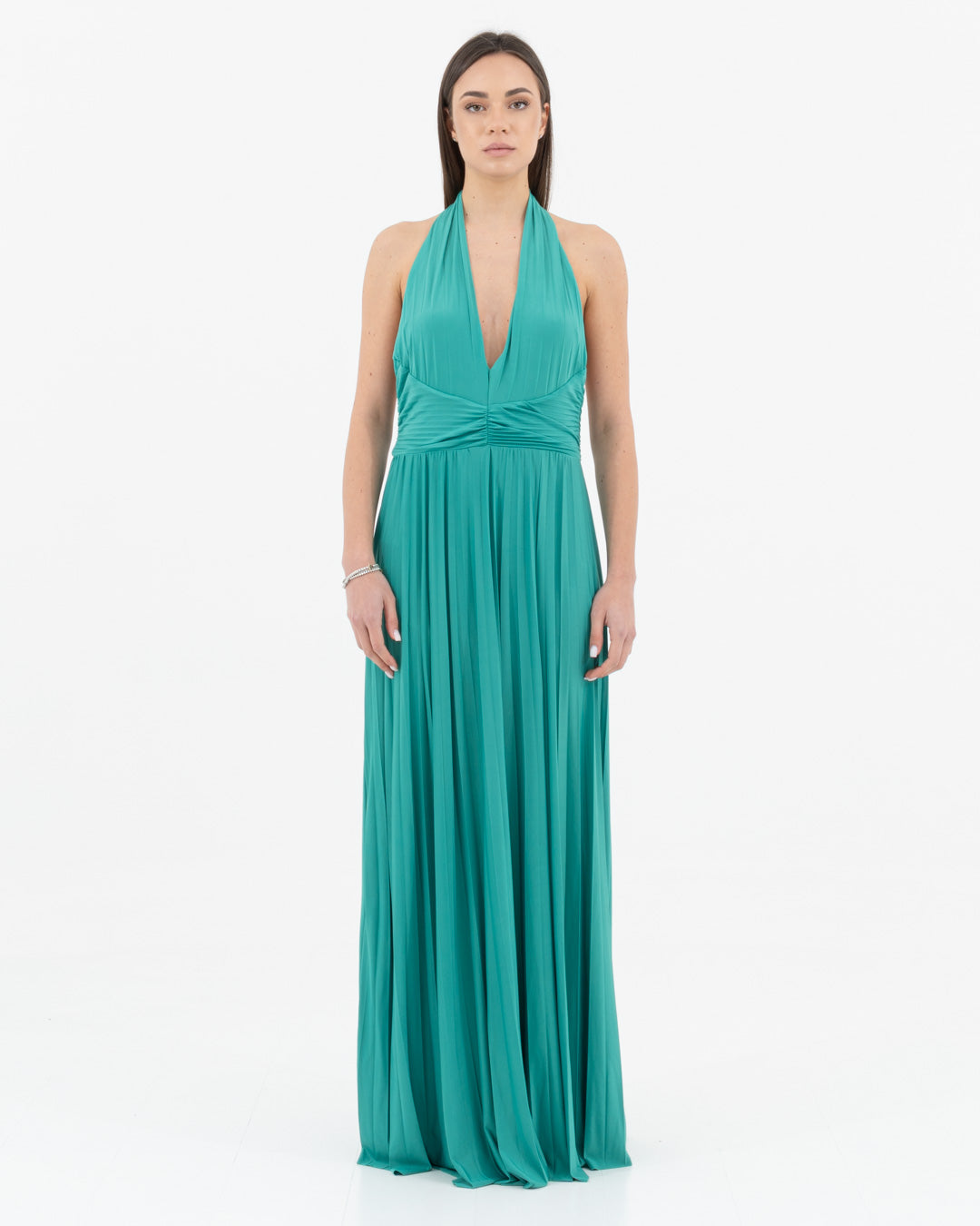 Refined, comfortable and versatile: this long jersey dress is the perfect choice for any occasion when you want to feel elegant without sacrificing comfort. The feminine neckline discreetly enhances the décolleté, while the pleated work on the fabric gives movement and lightness to the silhouette. The soft and elastic jersey adapts perfectly to the shape of the body, ensuring a comfortable fit and a fluid fall. Ideal to wear both during the day with low sandals or sneakers, and in the evening with heels and bright accessories.