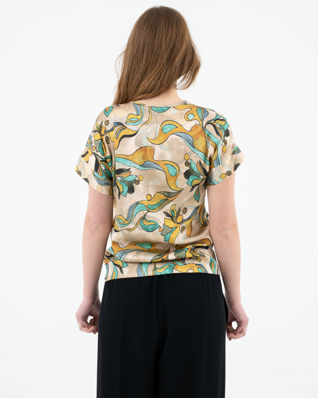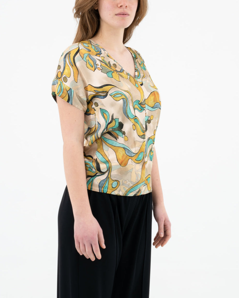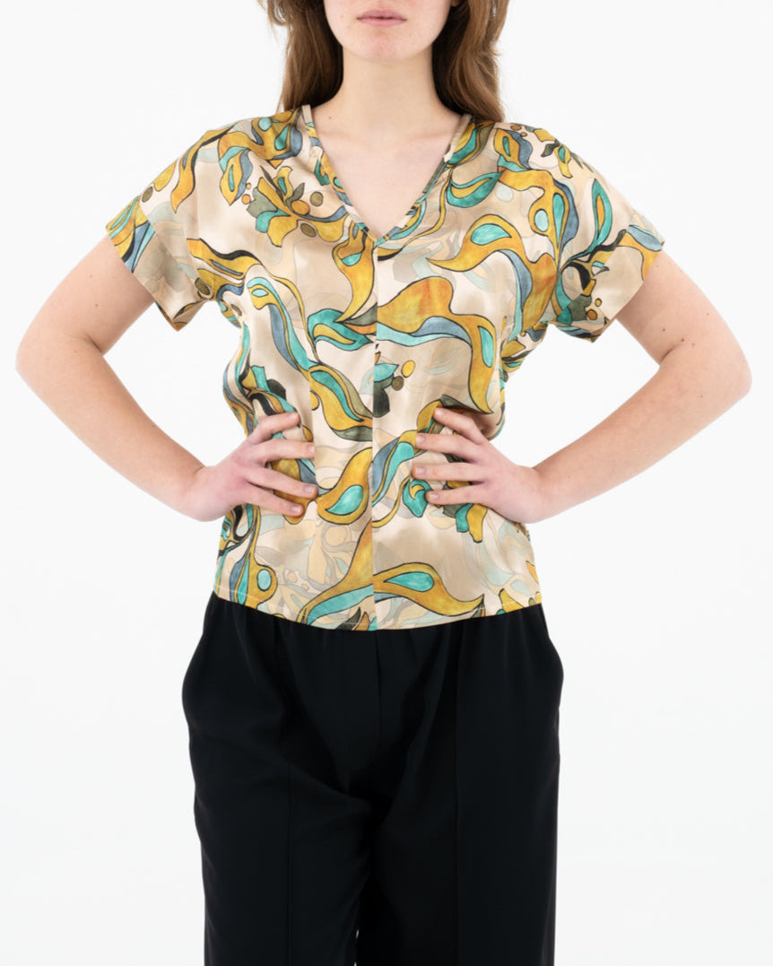 Blusa con scollo a V fantasia astratta